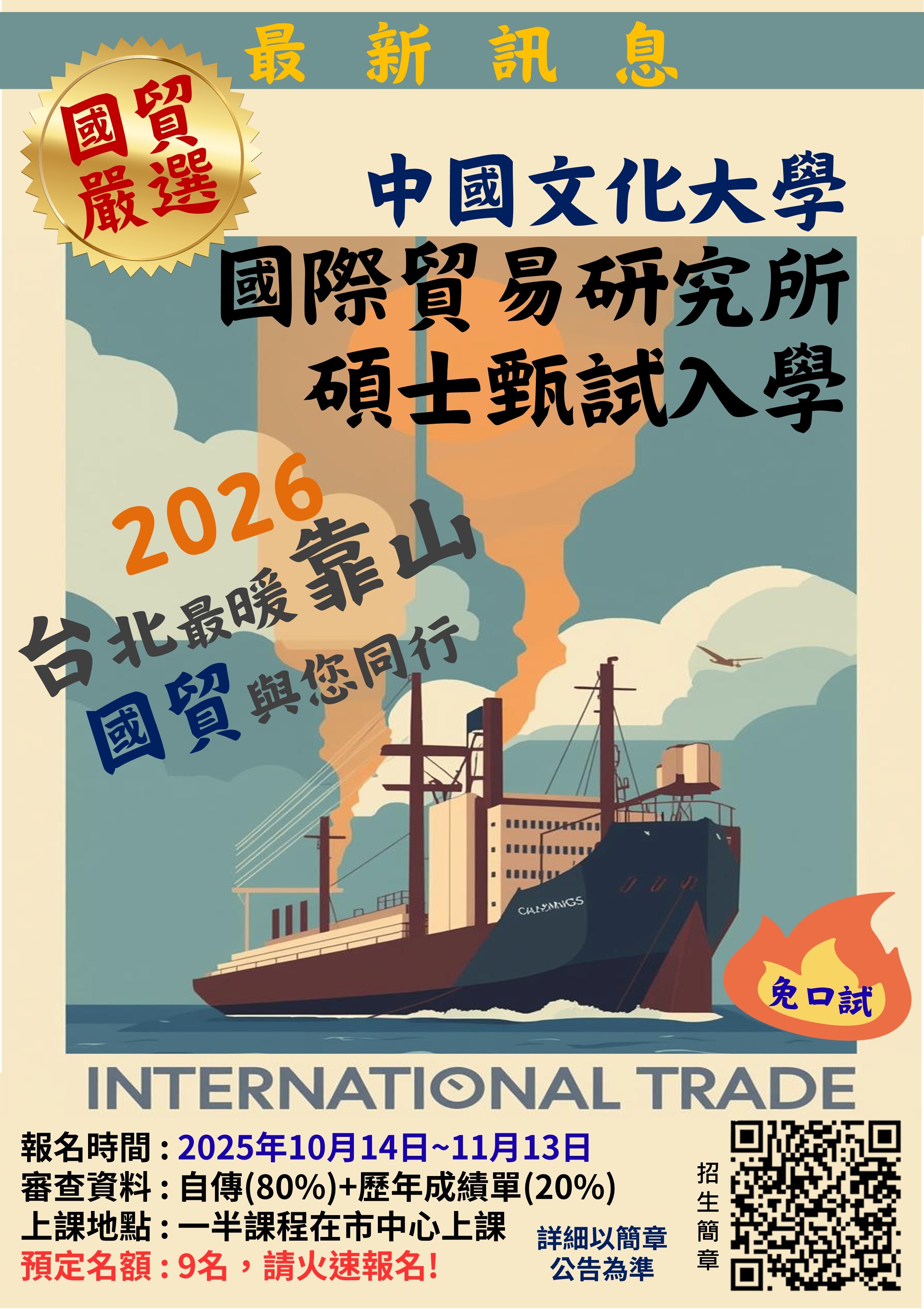 【招生資訊】文大國貿所115學年度碩士甄試入學資訊與報名網址